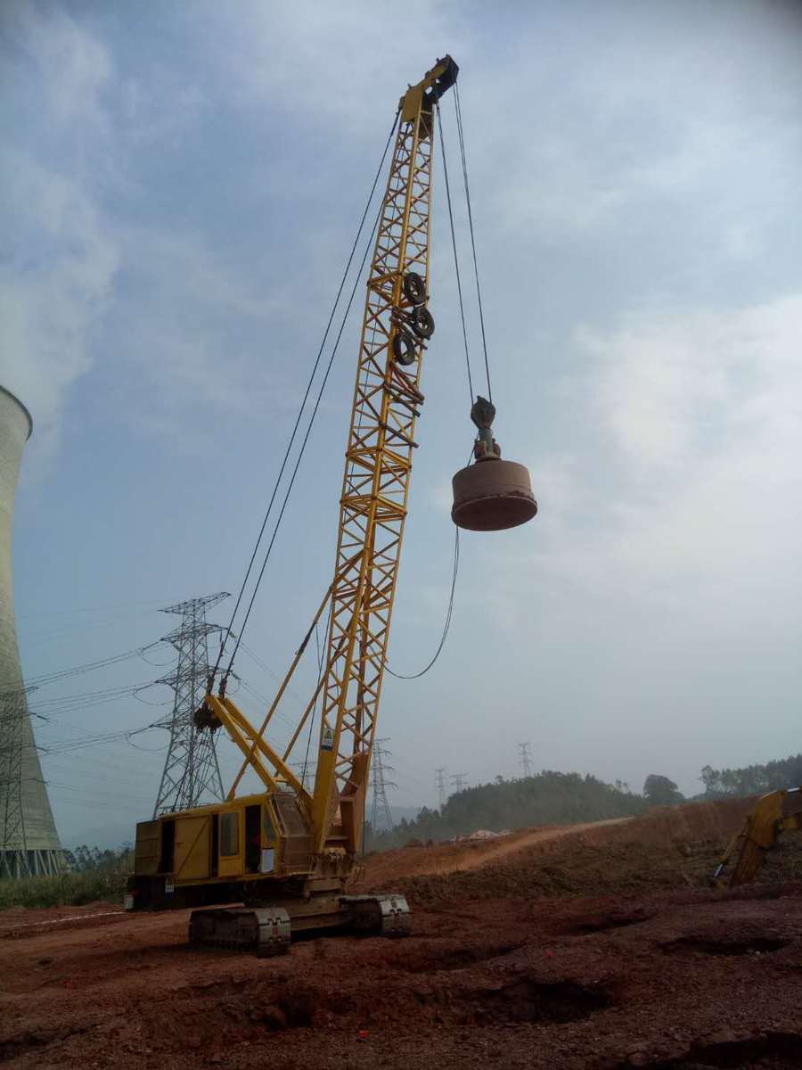 3、将夯锤起吊到预定高度,待夯锤脱钩自由下落后,放下吊钩,测量锤顶高程。若发现因坑底倾斜而造成夯锤歪斜时,及时将坑底整平。